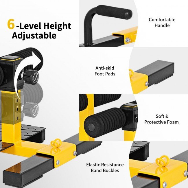 6 Levels Height Adjustable Up To 5.5": The height of front pole can be adjusted up to 5.5". Before the exercise, the calf should be close to the high elastic black foam for protection, and the height of the footrest foam can be adjusted according to the height of the foot.