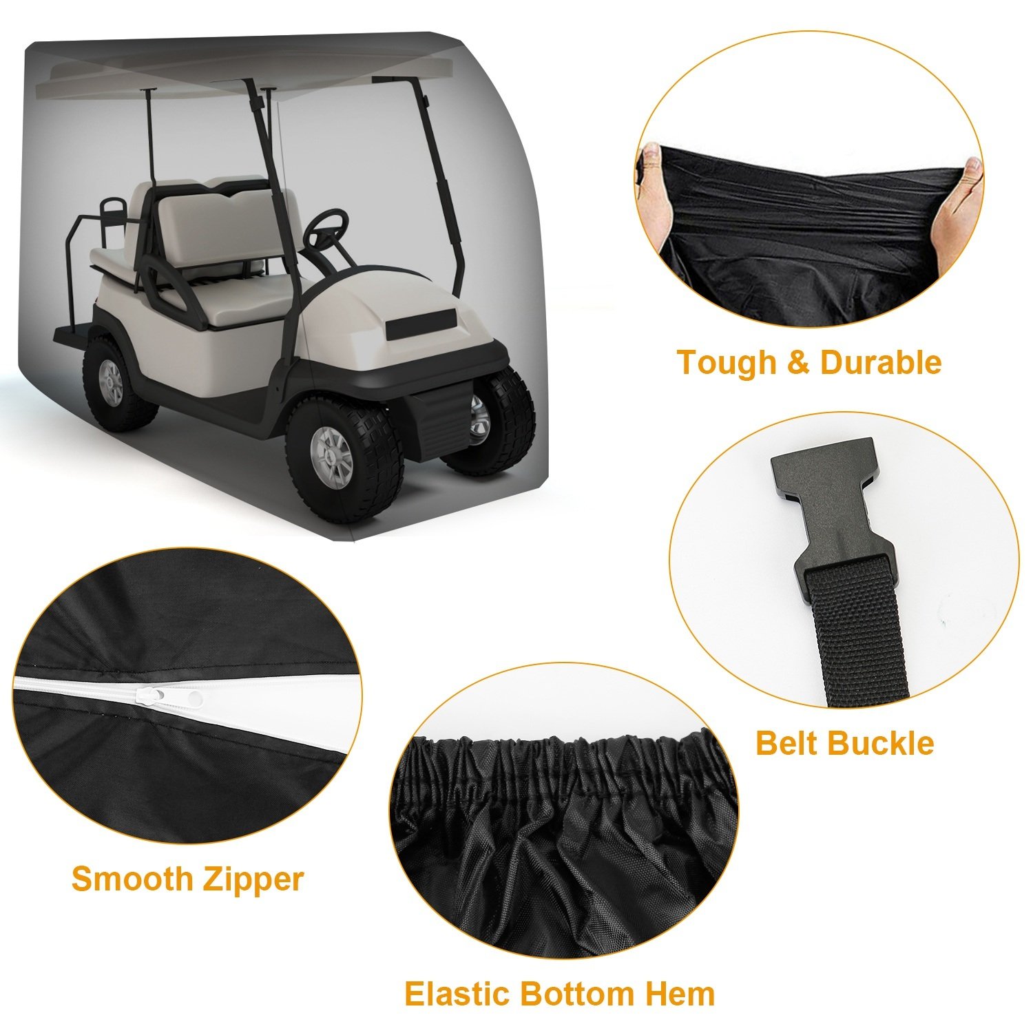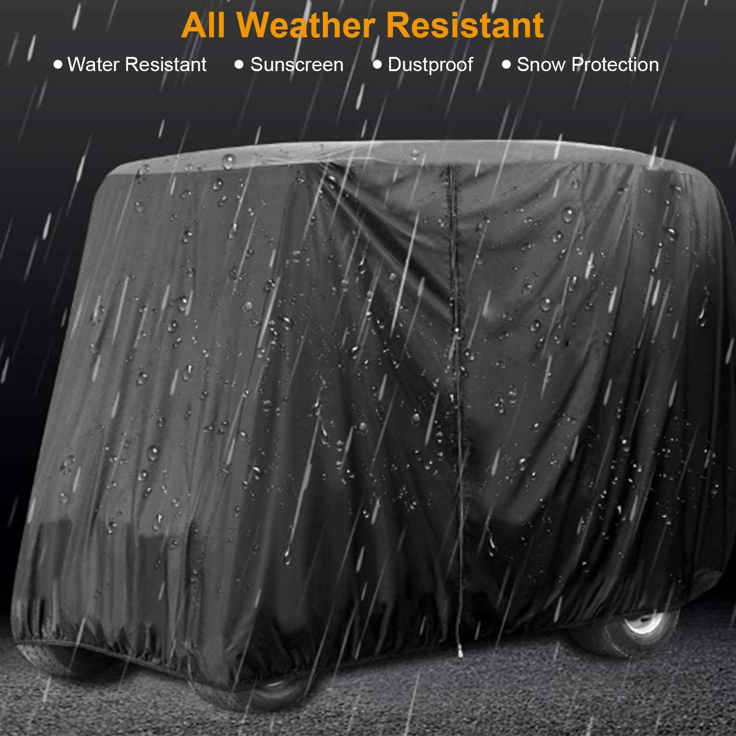 **Water-Resistant& Sun-proof*:Boasts durable superior 210D oxford cloth coated with water-resistant material; protecting your golf cart against rain; UV; sand; snow; dust; fog; scratch and other harsh weather situations.
